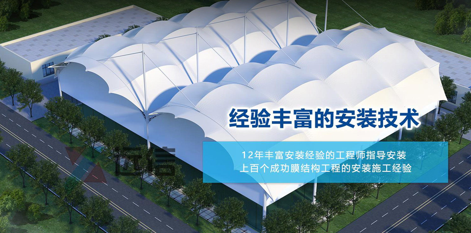 3.從結(jié)構(gòu)設(shè)計上降低膜材安裝難度選用膜材均為國產(chǎn)或進口優(yōu)質(zhì)膜材料,高強拉力,優(yōu)質(zhì)抵抗老化涂層